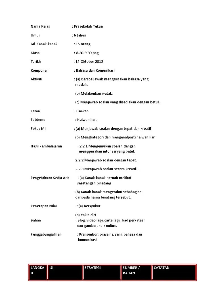 Haiwan liar rancangan pelajaran harian 2013 prasekolah tema: